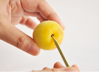 梅の実を軽く水洗いして水気をとったらヘタ取り。