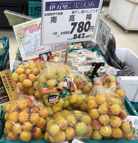 黄色の梅の実が完熟梅。去年、伊万里のMAXバリューで見かけたからスーパーで売ってそう。