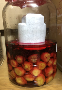 去年作ったときは、表面が空気に触れていた2粒に白いカビが付着してしまった。。